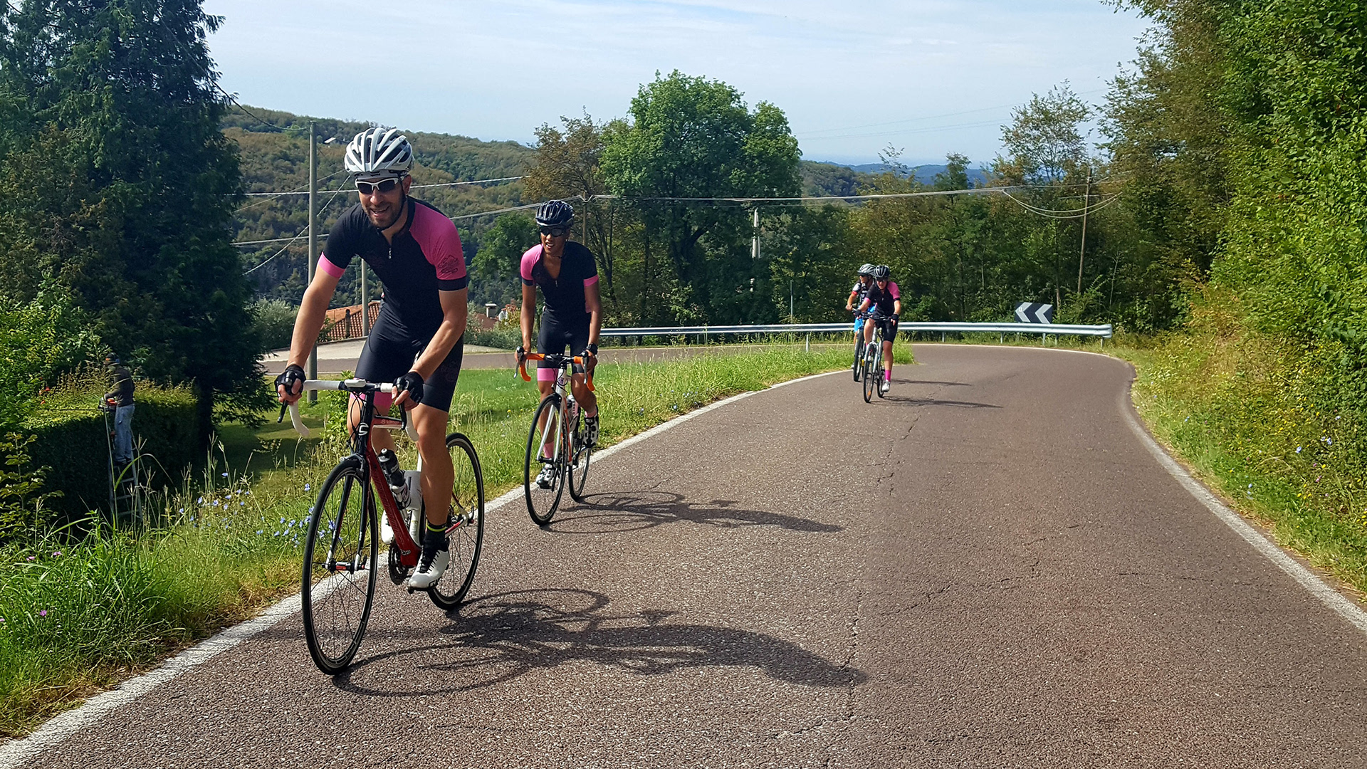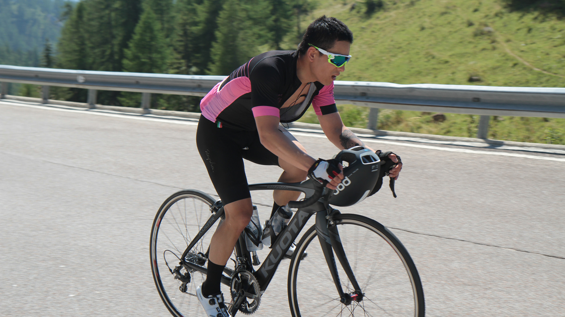 For their 2016 world tour the Cammeray Roadies headed to the mountain roads of the Dolomites in Italy. The kit pays homage to the Maglia Rosa and features the route profiles for each stage of the tour.