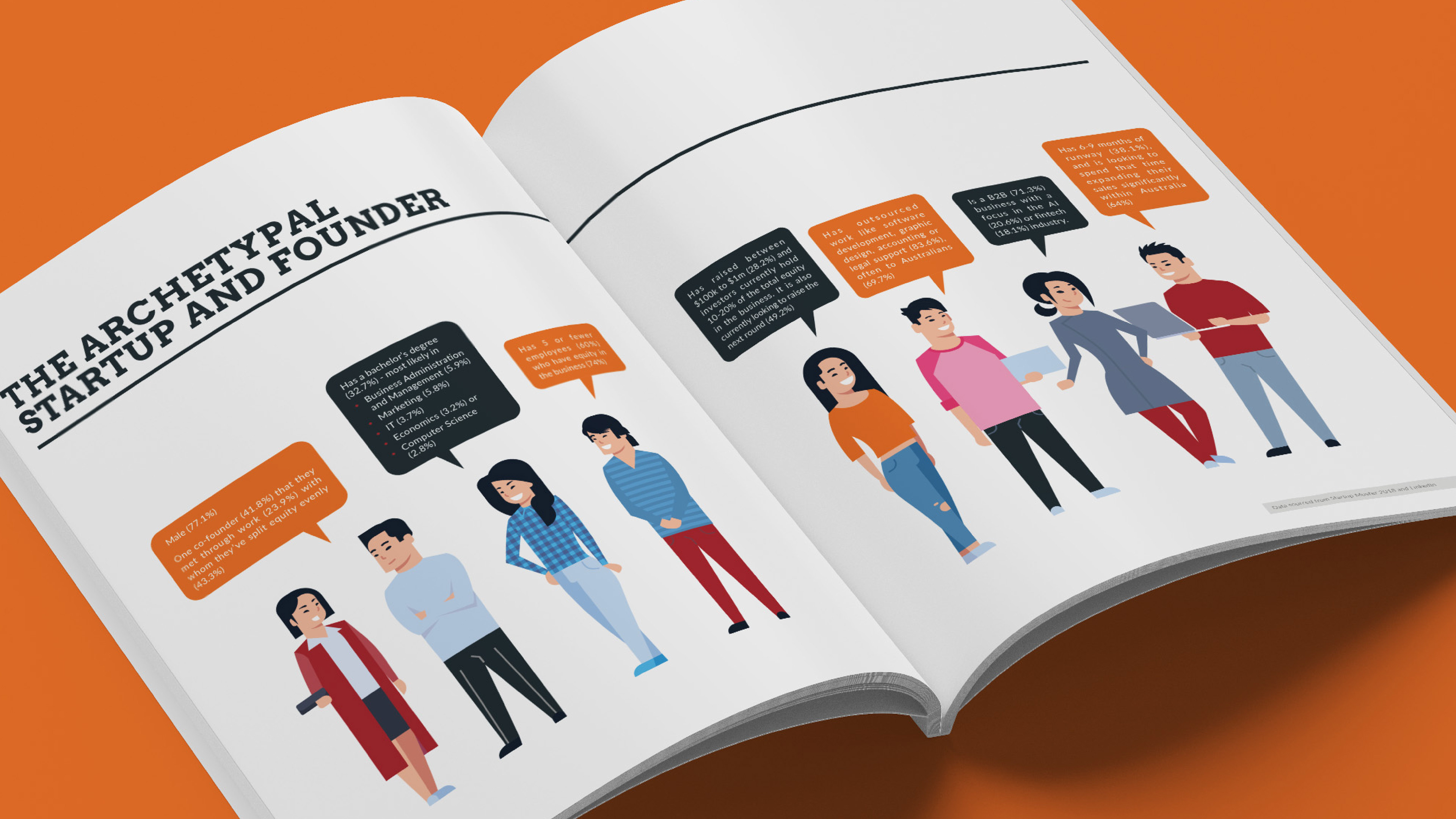 The StartupAUS Crossroads Report is an annual definitive guide to Australia’s tech startup sector. To mark a new direction with the report a new visual style was developed including new layout, infographics and iconography throughout the report.